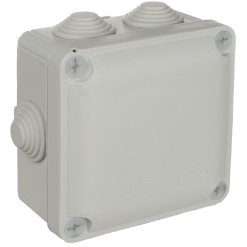 Tags: Y715, Verdeeldoos voor connectie met draadgoot + bevestigingsklip, 100 x 100 x 55, IP55, solera, grijs