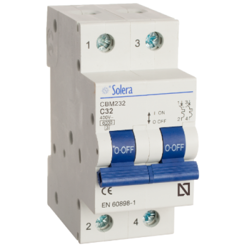 Tags: CBM232, Automaat 2P-6KA 40 A-curve C 2P/32A, grijs, Solera