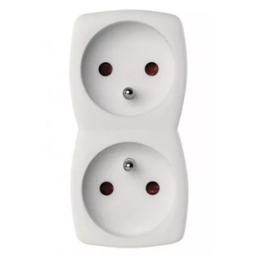 Tags: P0028, Domino duo, zonder schakelaar, 2 stopcontacten, wit, emos
