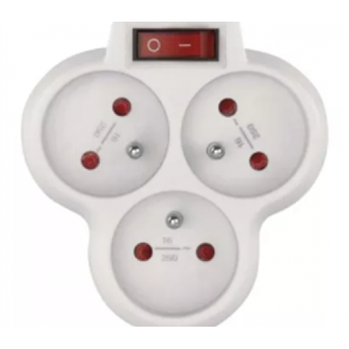 Tags: P0026S, trio Domino, met schakelaar, 3 stopcontacten, wit, emos