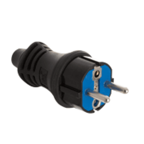 Tags: 5706C, Rubber stekker 2P+T, zwart, IP44, 16A/250V, solera