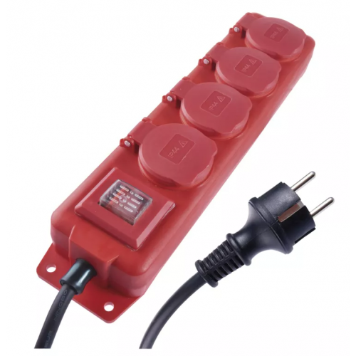 Tags: P14151, Stekkerblok + switch, IP 44 5M, Rood, Emos