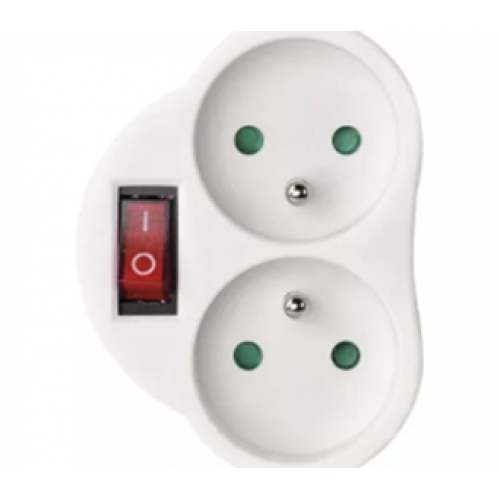 Tags: P0062, Domino duo, met schakelaar, 2 stopcontacten, wit, emos