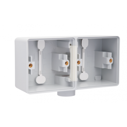 Tags: 700-84801, spuitwaterdichte dubbele horizontale opbouwdoos met een M20-ingang voor twee functies grijs, IP55, Niko